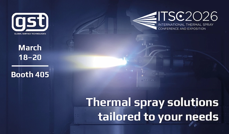 The GST team warmly welcomes you and looks forward to share our experience and capabilities in thermal spray (Booth 405). See you soon!