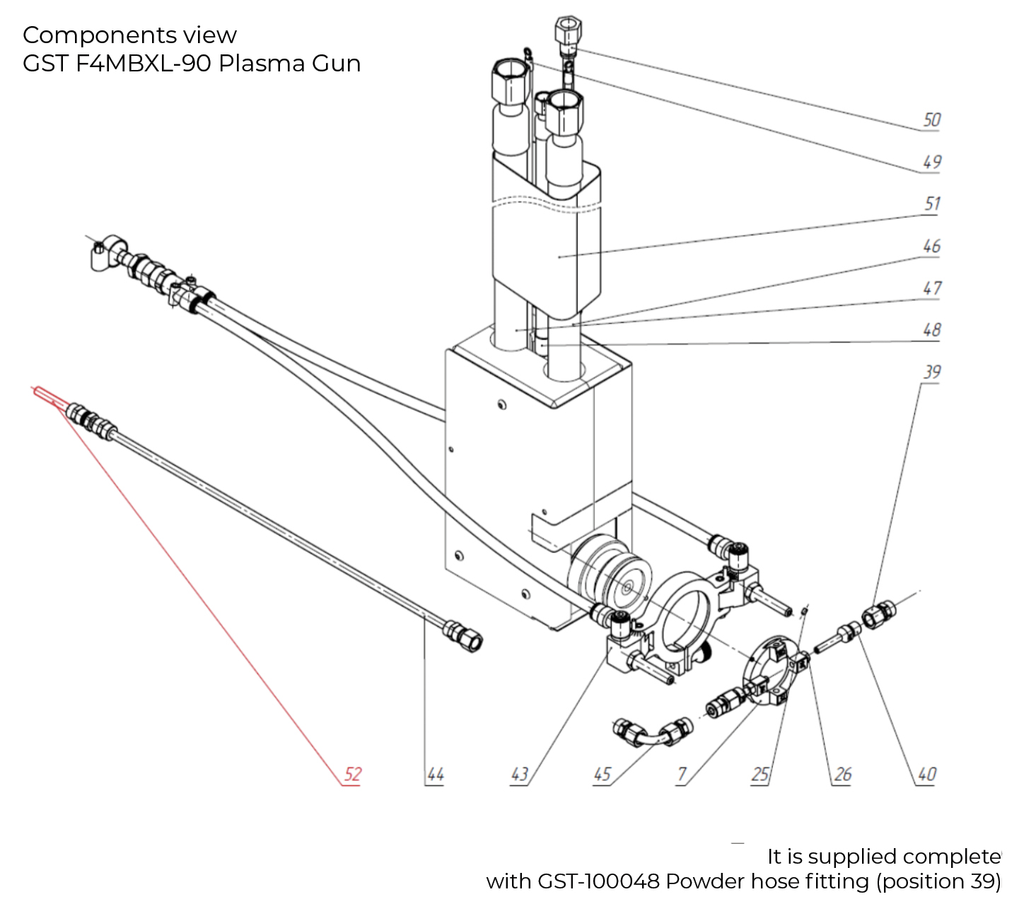 GST-100049 Powder hose is supplied complete with GST-100048 Powder hose fitting. (Position 52)