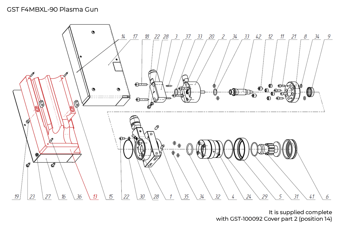 GST-100091 Cover part 1 is supplied complete with GST-100092 Cover part 2. Compatible with F4-90 plasma gun model, on the F4-90 plasma gun diagram it is displayed as position 13